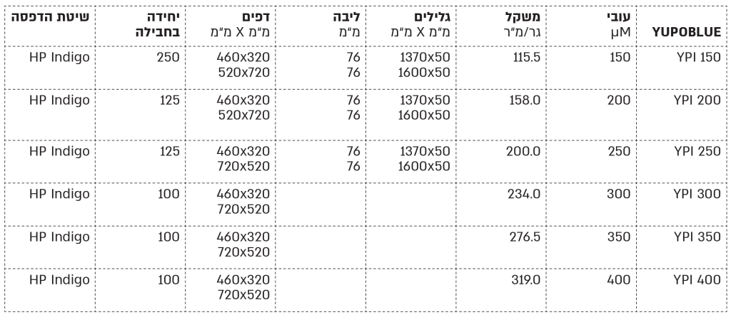 YUPO BLUE תוכנן והותאם לשימוש במכונות דפוס HP Indigo ובך מובטחת התאמה מירבית.