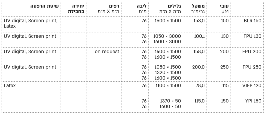 מגוון דרגות נייר שונות זמינות למגוון שיטות הדפסה.
